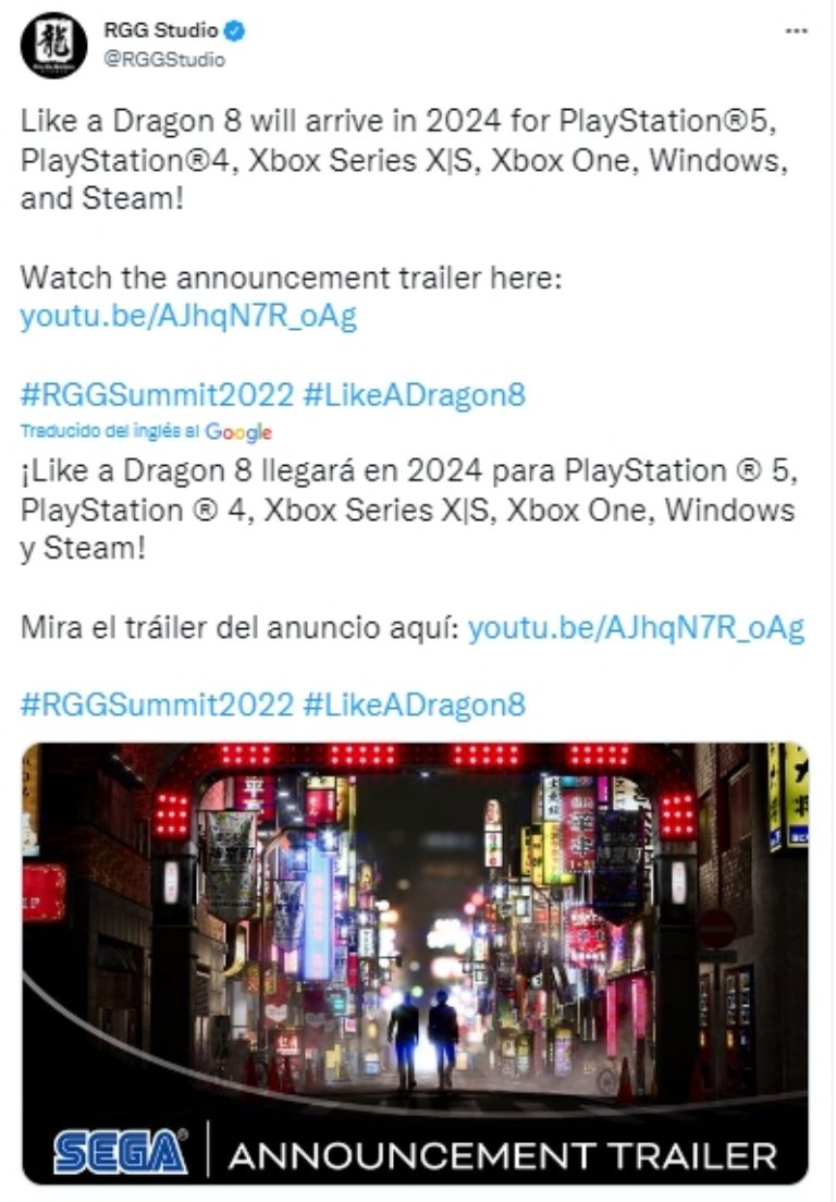 RGG Studio anuncia le próximo juego 'Like a Dragon 8' con un tráiler que puedes ver a continuación; mira todos los detalles al respectoEstados Unidos.- La espera ha terminado, y finalmente hay información fresca sobre el nuevo juego Yakuza 8. Sin embargo, RGG parece estar haciendo algunas tareas de limpieza, ya que la parte Yakuza del nombre parece haber sido abandonada a favor del nuevo título: Like a Dragon 8.