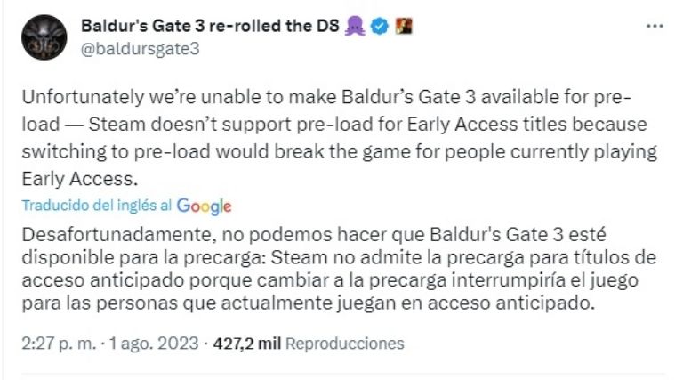 La ausencia de una opción de precarga ha generado decepción entre los seguidores del juego, quienes han expresado su descontento a través de las redes sociales. Para aquellos que han estado apoyando el juego desde el principio, esta situación podría significar una espera adicional de varios días antes de poder sumergirse en el mundo de Baldur's Gate 3. Si bien las decisiones apresuradas en torno al lanzamiento han llevado a algunas situaciones desafortunadas, como este problema con Steam, es importante recordar que las complicaciones técnicas son a veces inevitables en la industria del videojuego.