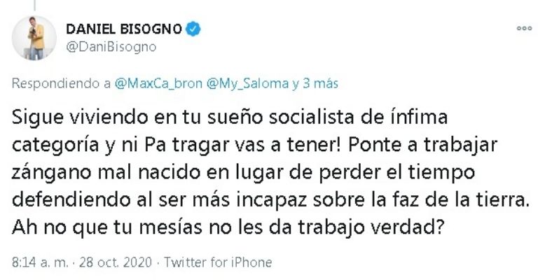 Pero la cosa no quedó ahí ya que al recibir respuesta de otros seguidores sus palabras subieron de tono.