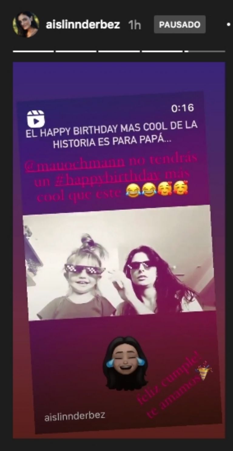 A través de sus historias de Instagram Aislinn Derbez, subió un video en el que ella y su hija Kailani se pusieron los lentes y se unieron en coro para felicitar al actor.