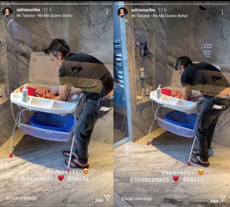 Thuany Martins, su esposa, lo grabó en la regadera de su baño dándole un baño a su pequeña hija, aunque esta estaba en su tina muy quita, sin moverse. Por lo que dejó ver que, sin duda alguna, Adrián Uribe disfruta al máximo de su hija y los primeros meses que comparten, pus no se pierde ninguno de los momentos más importantes.