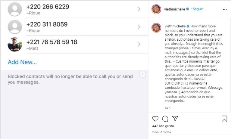 Michelle de 41 años, compartió también una serie de diversos números telefónicos de Estados Unidos, con los cuales aseguró que no la dejan de molestar y la llaman constantemente, incluso, señaló que los ha tenido que bloquear para que no le llegue más.