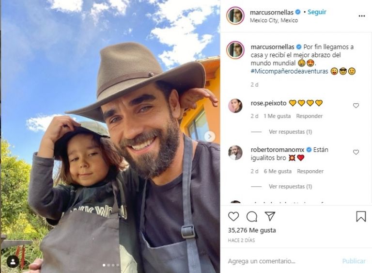 Pero el día que ambos regresaron a México, donde su hijo los estaba esperando ansioso y con mucho amor, pues esto fue lo que el mismo Marcus señaló en su cuenta de Instagram en una tierna foto a lado del pequeño y él vestidos de la misma manera con un mandil negro pues preparaban una carne asada en su jardín.
