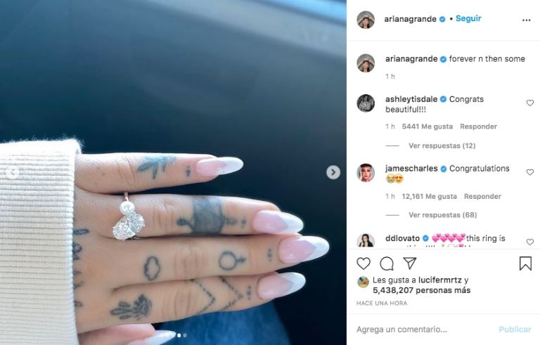 Ariana Grande confirma en redes sociales que está comprometida con Dalton Gomez