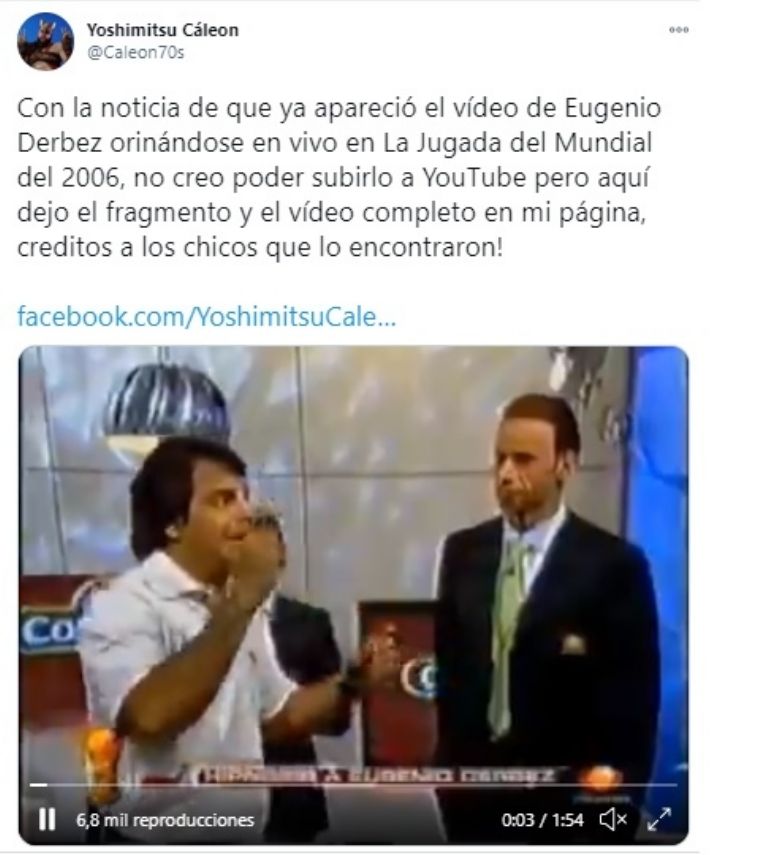 En este video, el hipnotista hizo que Eugenio Derbez se orinara en vivo durante la transmisión de un mundial. Aunque muchos usuarios que no recuerdan dicho momento y lo consideraban un mito, ahora un internauta se dio a la tarea de buscarlo en lo más recóndito de la web y lo divulgó; así que causó mucha indignación en las redes sociales.