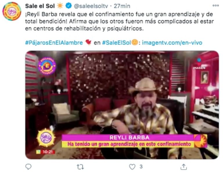 Reily Barba confesó que el aislamiento debido a la pandemia fue mucho más agradable que los confinamientos que vivió por sus adiccionesCiudad de México.- Reily Barba es uno de los músicos más talentosos que ha dado México. Sin embargo, las adicciones lo llevaron a tocar fondo, al punto de que se tuvo que recluir en centro psiquiátricos y clínicas de desintoxicación para salir adelante.