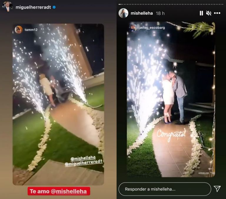 Cuando Herrera compartía el momento en las redes sociales, Mishelle presumió en otras fotos en anillo que marcaba el compromiso. El evento estuvo lleno de fuegos artificiales que iluminaron el inolvidable momento, además padre e hija se abrazaron después de que su novio le dio la sortija.