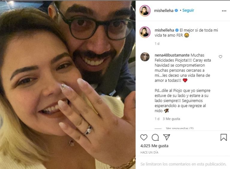 Pero más tarde, Mishelle realizó una sesión de preguntas y respuestas con sus seguidores y dio detalles de la relación que tiene con su novio y ahora prometido. Entre las respuestas, contó que se conocieron en la primaria, y se llevan dos años; pues ella tiene 25 y el 27.