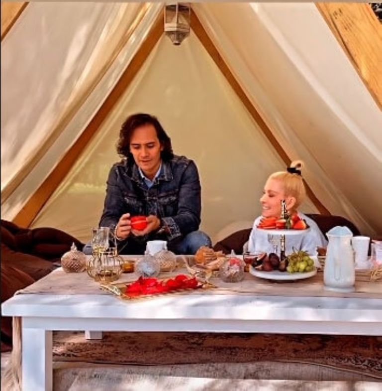 Pero por si esto no fuera suficiente, al día siguiente, la pareja disfrutó de un rico desayuno romántico en un jardín, donde comieron frutas, jugo de naranja y pan dulce. Un trompetista fue el encargado de amenizar el especial momento.