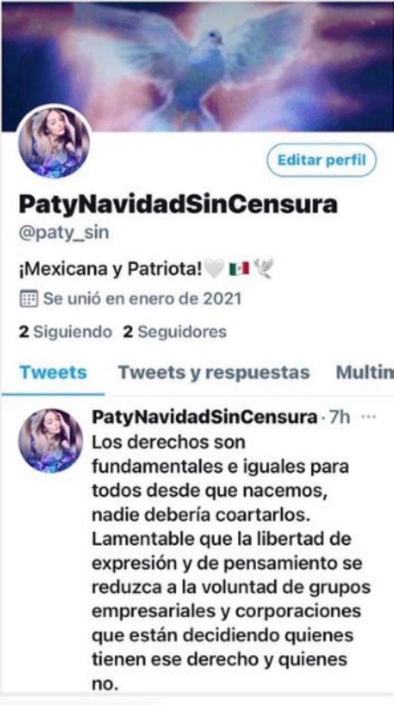 Lee también: ¡No cede! La polémica actriz Paty Navidad reta a Twitter y abre una tercera cuenta