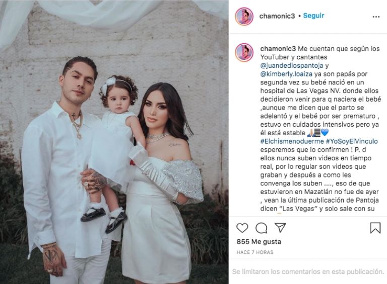 La cuenta de Instagram @Chamonic3 publicó que la pareja decidió pasar los últimos días en Las Vegas, Nevada donde decidieron tener a su bebé para que este contara con el pasaporte americano.