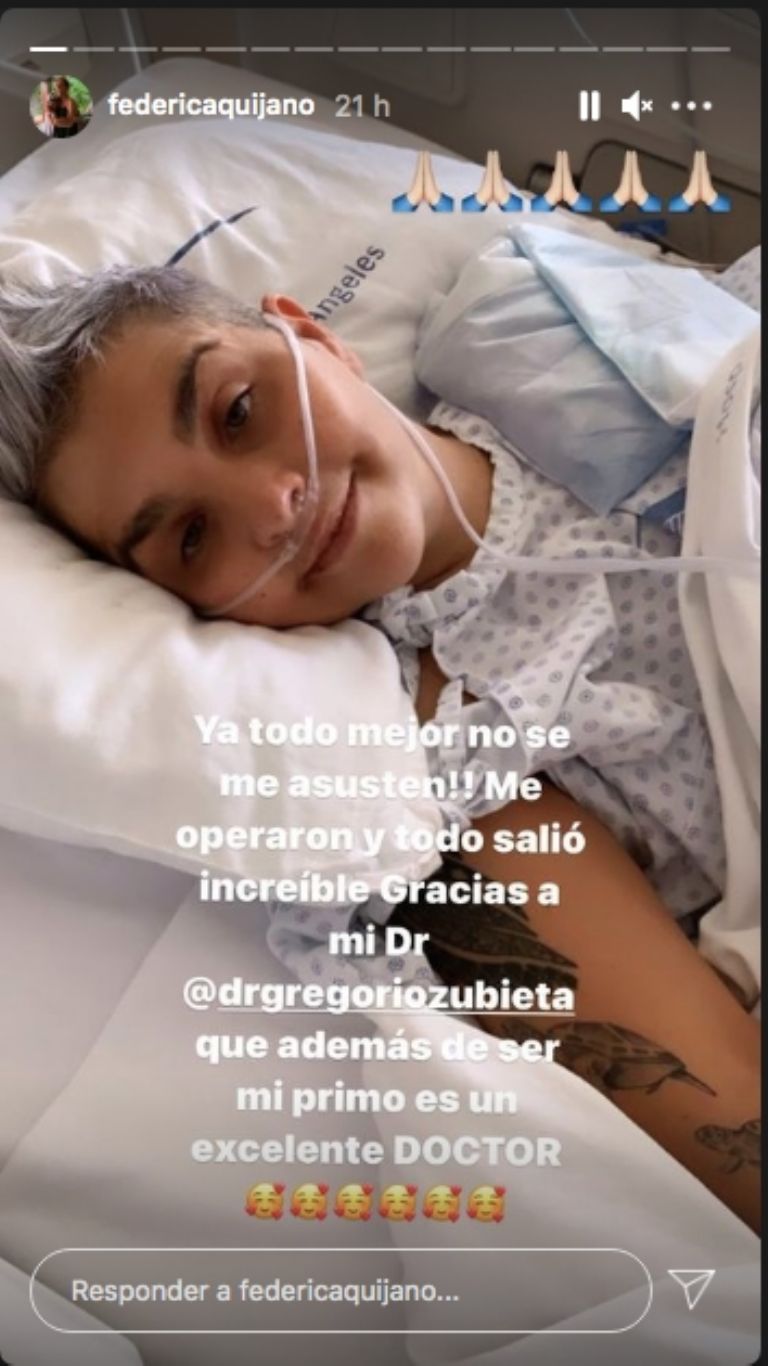 En sus historias la intérprete reveló que fue intervenida por un problema en el esófago debido a que sufrió reflujo, condición que estaba afectado sus cuerdas vocales.