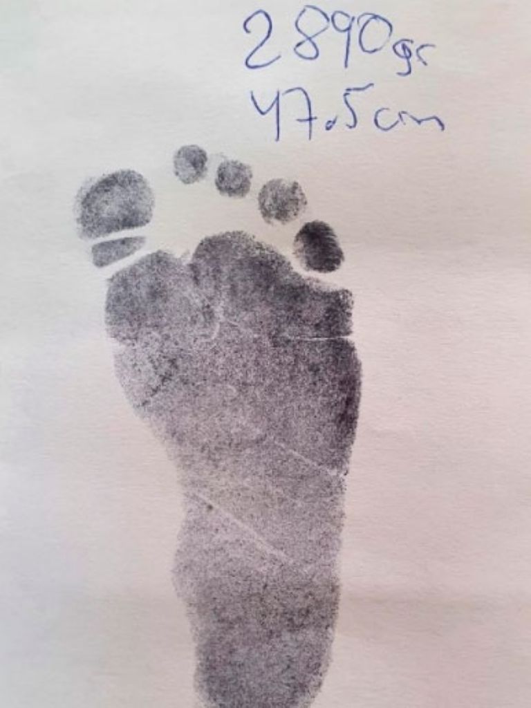 Pero por si esto no bastara, también enseño una imagen con la huella del pie de su bebé, que fue plasmada sobre una hoja de papel en donde está escrito que pesó 2 kilogramos 890 gramos y midió 47.5 centímetros al momento de nacer.