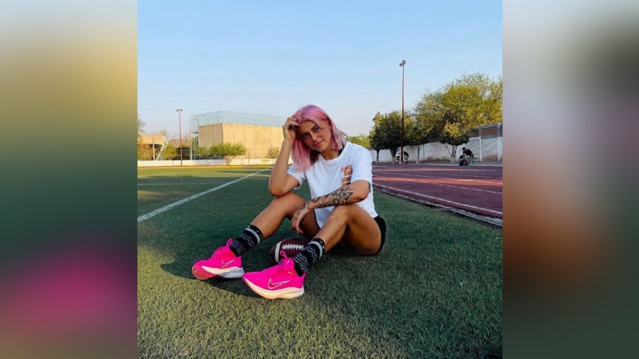La jugadora de futbol americano se hizo acreedora de miles de halagos enfundada en un ajustado y corto short rojo con negro y un suéter negro manga larga, exhibiendo lo impresionante de su atlética figura.