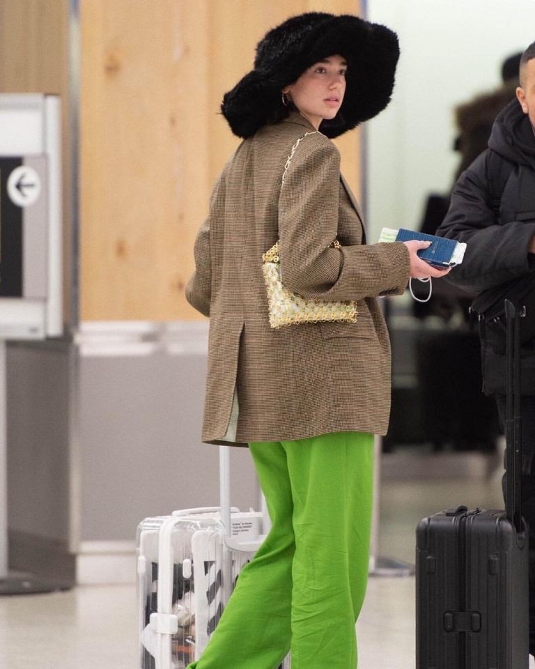 Una captura de pantalla del supuesto uso de Lipa de la foto, que muestra a la estrella de pie en la fila en un aeropuerto mientras usa un sombrero de gran tamaño. Integrated Images afirma que la foto fue tomada solo unos días antes de que Lipa la publicara en su cuenta con la leyenda: