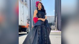 Esmeralda se robó las miradas y se llevo los atrevidos piropos al lucir su entallado atuendo amarillo con franjas café con el que cautivó tanto que nadie ha dudado en expresarle lo maravillosa que se ve al pasar en el balcón de un hotel.