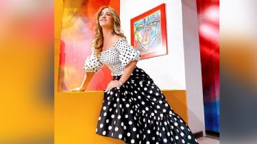 La esposa de Erik Rubín, se robó más que los suspiros de sus millones de seguidores en un precios pantalón blanco y una entallada blusa negra, complementándola con una chaqueta blanco, demostrando porque es considerada como la conductora más guapa del programa.