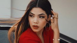 Su cabello lo trae suelto, pero peinado hacia atrás, en cuanto a su maquillaje, este está ligeramente cargado tanto de los labios como de los ojos, pero haciendo un mayor énfasis en la mirada. Lo que sí es que se ve espectacular.