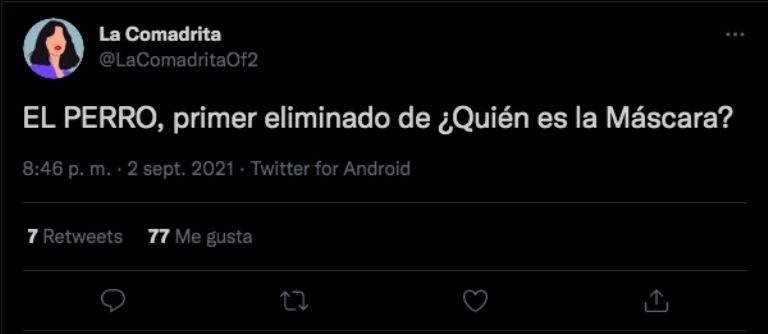 La cuenta de Twitter @LaComadritaOf2 fue la que indicó al posible primer expulsado del programa de Televisa, este será el personaje del Perro, lo que sí no dijo es quién es el famoso que está debajo de ella.