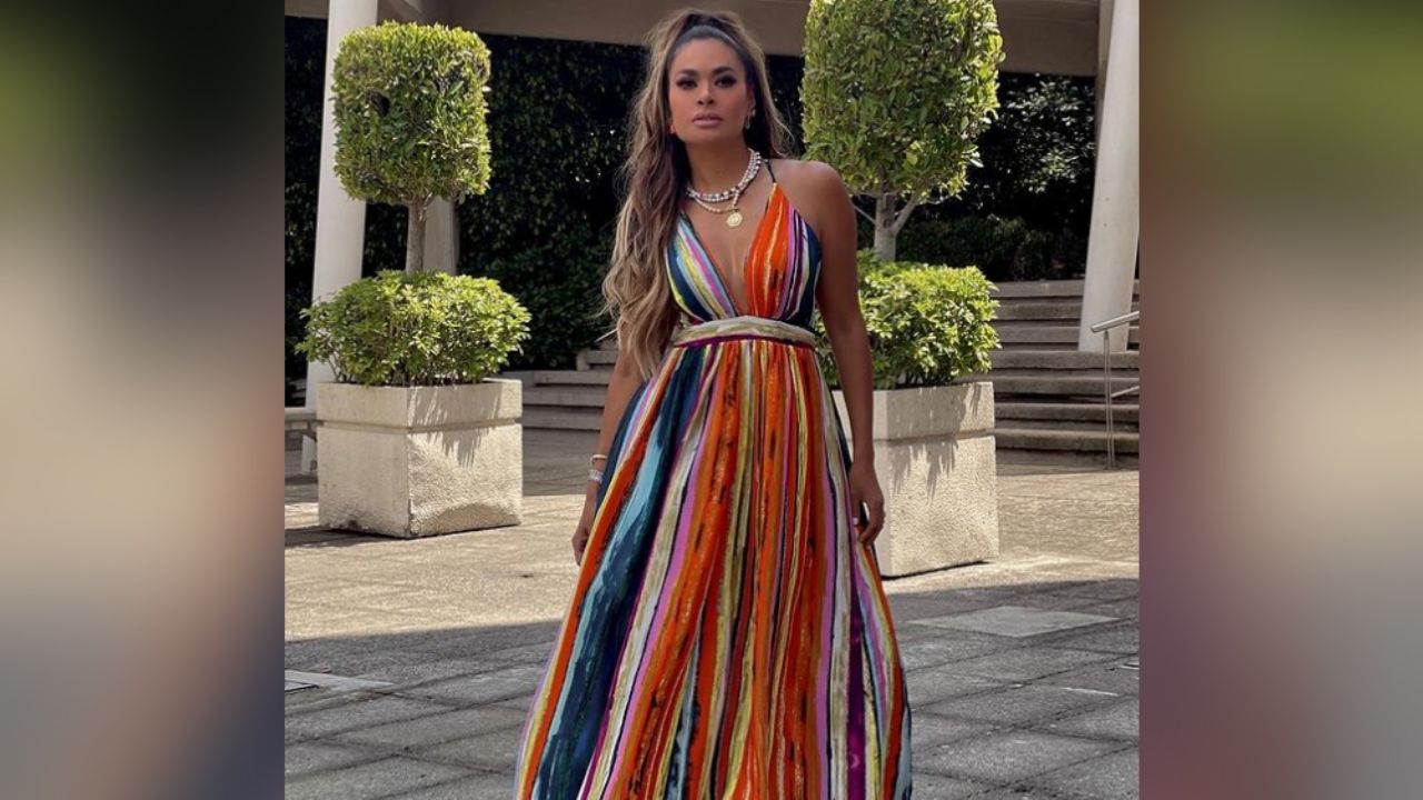 Montijo compartió una foto desde el jardín de la empresa San Ángel, en donde posó recargada sobre una maceta de concreto, con un atuendo en el que resalta su maravillosa figura, exhibiendo sus piernas.
