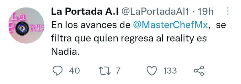 Esta noticia ha dividido opiniones, pues mientras algunos creen que Nadia merece regresar, pues estuvo pocos programas debido a que contrajo Covid-19, para otros no está bien que la producción regrese gente que por una u otra razón salió, no obstante cabe mencionar que aunque está página suele certera hay que seguir la transmisión de MasterChef Celebrity para corroborar que es la cantante la que regresa.