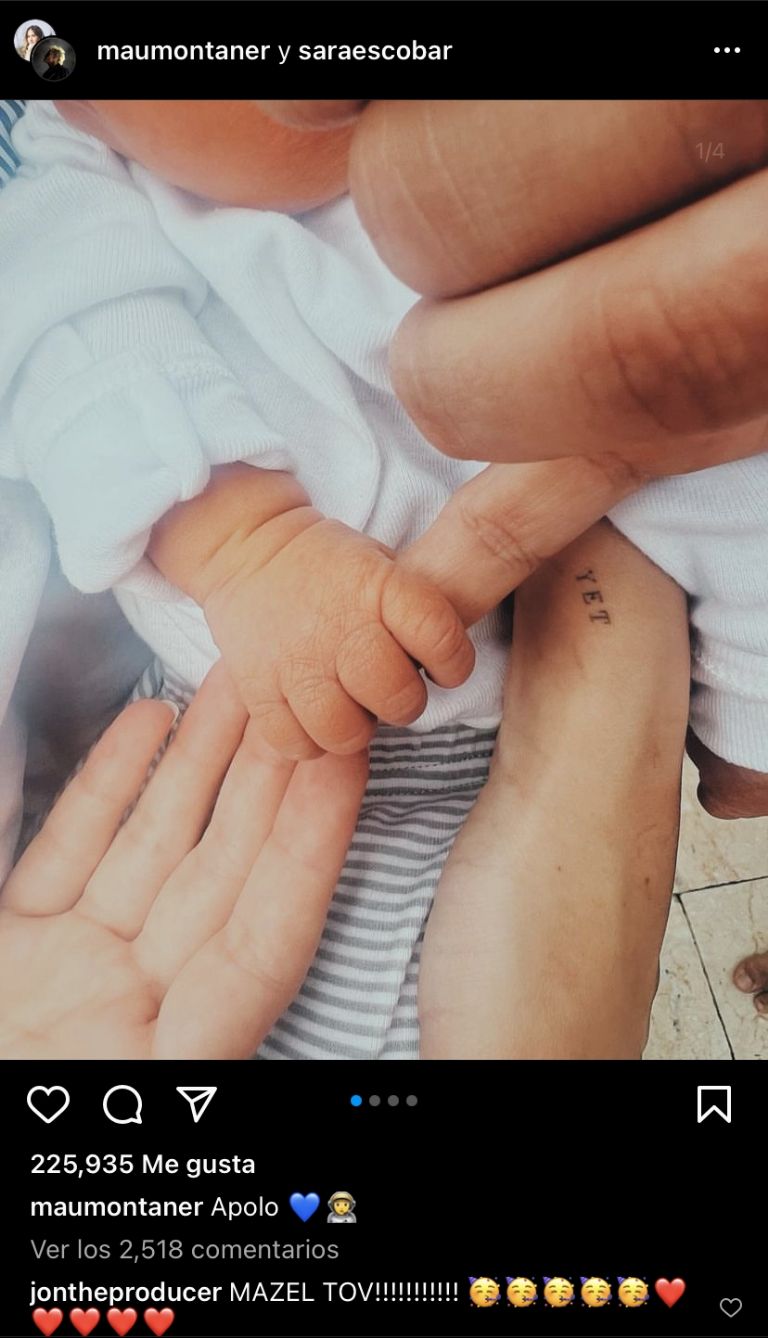 A través de sus cuentas de Instagram, la pareja compartió las primeras imágenes del recién nacido. “Apolo”, escribieron junto a emojis de un corazón celeste y un bebe. Una publicación que recibió miles de likes y cientos de comentarios de felicitaciones por parte de los internautas.