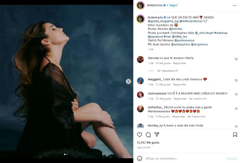 Dulce María regresa a Instagram y comparte coqueta fotografía de su look