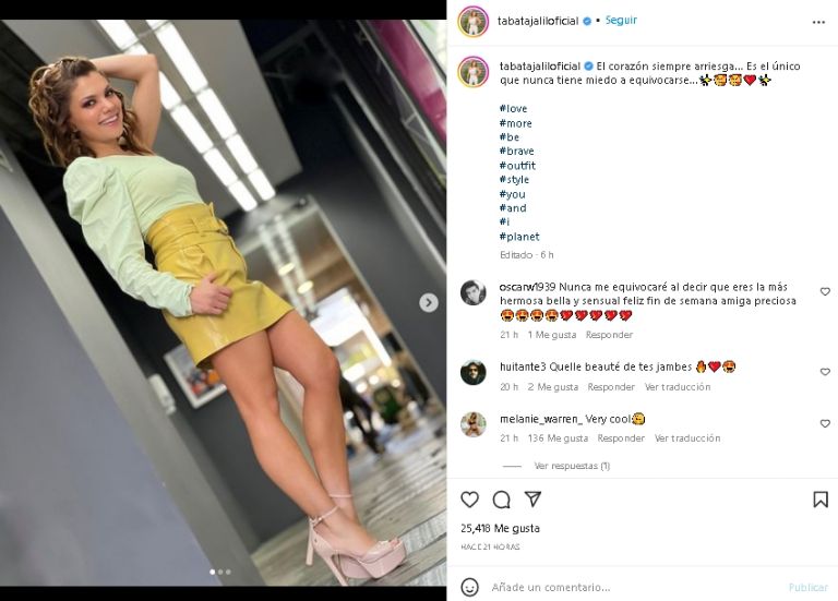 La aclamada conductora de televisión demostró su gran sentido de la moda, luego de posar con un coqueto look de día en InstagramCiudad de México.La aclamada presentadora de televisión mexicana, Tábata Jalil, logró enamorar a la audiencia con su gran sentido de la moda desde TV Azteca, luego de lucir un coqueto look descubierto desde las redes sociales. Una apariencia que causó oda una sensación en Internet por su indiscutible belleza.