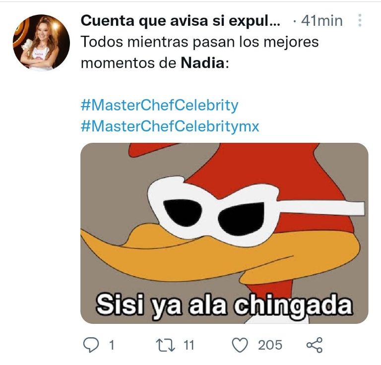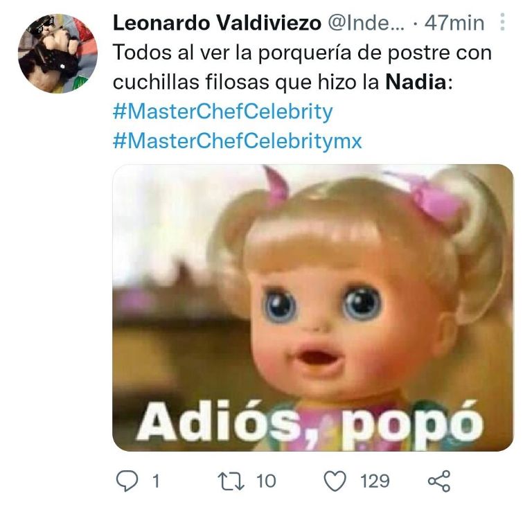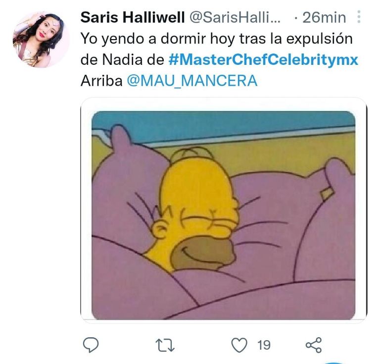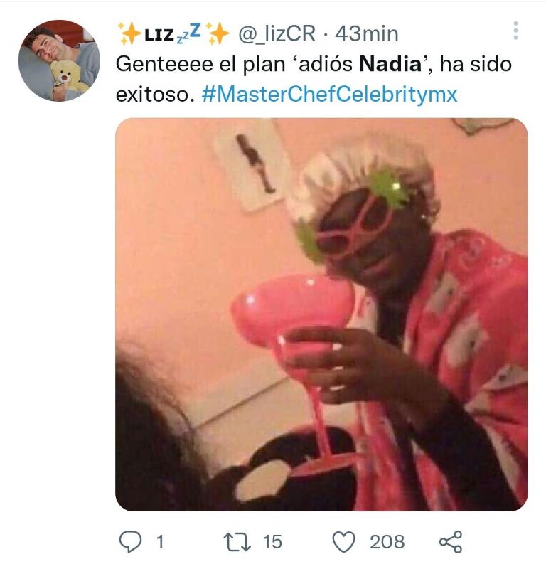 Finalmente, los chefs decidieron que Nadia abandonara nuevamente la cocina más famosa de la televisión, por lo que la cantante comentó que se retira satisfecha por lo que hizo y aprendió, así que agradeció haber tenido una segunda oportunidad y le deseo lo mejor a sus compañeros, pero las redes no perdonaron a la cantante y de inmediato festejaron su salida, pues a muchos se les hizo injusto su regreso.