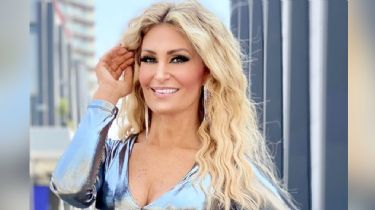 Anette presumió la maravillosa belleza que posee, a sus 47 años, con un corto y ajustado vestido azul con líneas y puntos negros, que resaltaron su perfecta figura.
