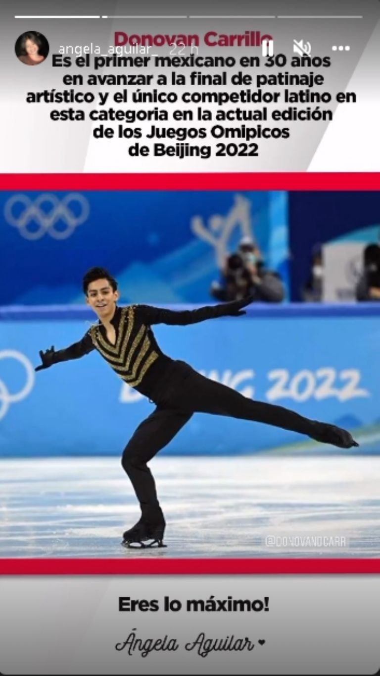 Ángela Aguilar felicita a Donovan Carrillo por final de patinaje artístico en Beijing 2022