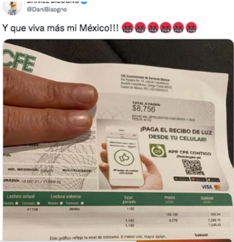 Daniel Bisogno denuncia tarifas de CFE y lo tunden en redes; ¿no tiene para pagar la luz?