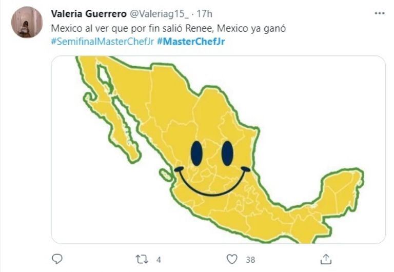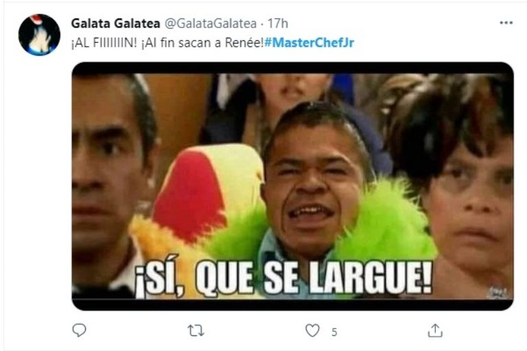 ¡Qué se largue! Los internautas celebran la expulsión de Renée de 'MasterChef Junior'Ciudad de México.- Las suplicas de muchos fans del programa de MasterChef Junior se hicieron realidad este fin de semana, pues después de una ardua batalla culinaria se dieron a conocer a los finalistas de esta edición, pero Renée no corrió con suerte y terminó quedándose fuera de la competencia a unos pasos de la gran final, situación que alegró a los internautas que de inmediato reaccionaron en las redes.