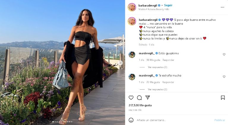 Desde su perfil de Instagram, la protagonista de Rosario Tijera compartió una fotografía en la que se deja ver posando un coqueto conjunto negro y unos tacones dorados que combinó con un peinado en ondas y un maquillaje en tonalidades claras. Un atuendo que utilizó durante sus vacaciones en Beverly Hills, donde destacó que se siente bien consigo misma y que no le importan las críticas de los demás: "Si pasa algo bueno entre muchas malas, me concentro en lo bueno".