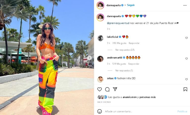 Desde las redes sociales, la intérprete de éxitos como 'Mala Fama', 'Oye Pablo' y 'Sodio' causó sensación entre sus 34 millones de seguidores, luego de posar con un top naranja y un pantalón de arcoíris que resaltó su envidiable figura de infarto, la cual es envidiado en el medio artístico y que por supuesto, presume cuantas veces aparece en la arriba de la tarima.