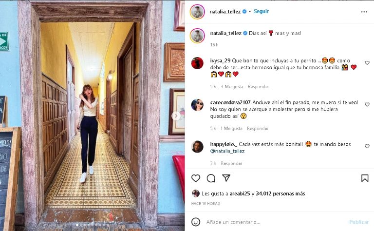 Fue así como la distinguida publicación de Natalia Téllez de inmediato se hizo popular en toda la red, por lo que sus fans no han dejado de elogiarla y escribirle mensajes de cariño por su gran sentido de la moda, entre ellos destacan: "Guapa", "Hermosa", "Linda", Qué preciosa", entre otros.