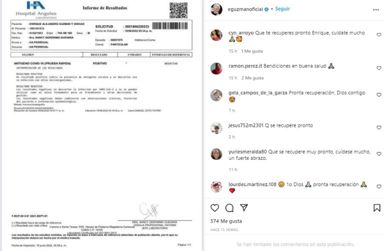 Al público que hoy me esperaba en Xalapa quiero informarles que no podré estar con ustedes. Ayer estuve en Orizaba y empecé a tener algunas molestias con mi garganta, hoy empeoró la tos y por indicaciones del médico regresé a la Ciudad de México para hacerme una prueba Covid, lamentablemente salí positivo", escribió en su cuenta de Instagram.