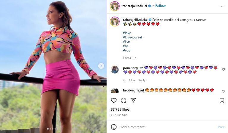La famosa conductora de TV Azteca apareció en las redes y poso con un distinguido look primaveral que la hizo brillar en los reflectoresCiudad de México.-Tabata Jalil, famosa conductora de televisión, hizo enloquecer a sus miles de seguidores de TV Azteca, luego de publicar una coqueta fotografía de su destacada apariencia, en especial de su increíble outfit primaveral que la hizo brillar entre los reflectores del espectáculo. Un look que causó toda una sensación en Internet, pues de lo más maravillosa frente a los reflectores del espectáculo.