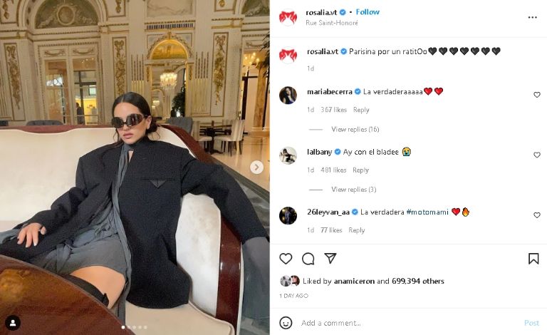 Rosalía posa con elegante look negro y enciende todo Instagram; así luce la guapa cantante