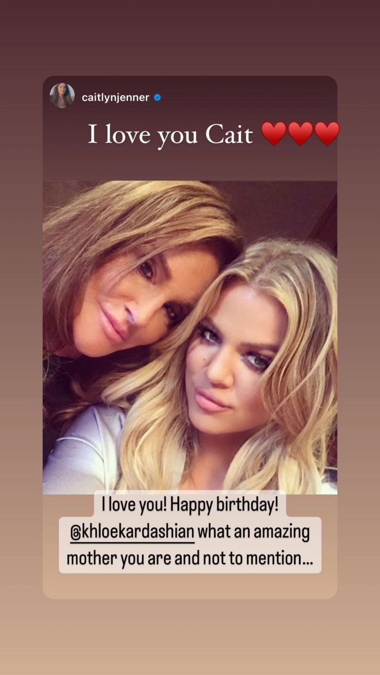 En sus propias historias de Instagram, Khloé publicó una dulce selfie de la fiesta, celebrando con su hija True, de 4 años, y la hija de Kim, Chicago, también de 4. También compartió buenos deseos de Caitlyn Jenner, quien publicó una selfie sonriente de los dos junto con una nota celebrando a Khloé como una "madre increíble".