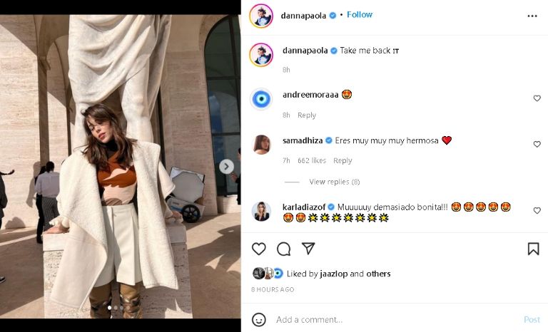 Dicha publicación causó revuelo y robó suspiros entre sus miles de admiradores, quienes no dudaron en enviarle un sinfín de comentarios llenos e carillo y piropos. Es por ello que el post de Internet ya cuenta con un sinfín de 'Me Gusta', así como varios comentarios llenos de cariño y piropos; entre ellos destacan: "La más Divina", "Hermosa", "Qué bonita" y más.