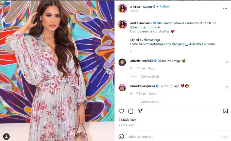 De esta forma, la distinguida publicación de Andrea Meza de inmediato se hizo popular en todo Instagram, pues ya cuenta con más de 36 mil 'Me Gusta'. Incluso sus fans no han dejado de elogiarla y escribirle mensajes de cariño por su gran sentido de la moda, entre ellos destacan: "La más linda", "qué hermosa", "Preciosa", "Divina", entre otros.