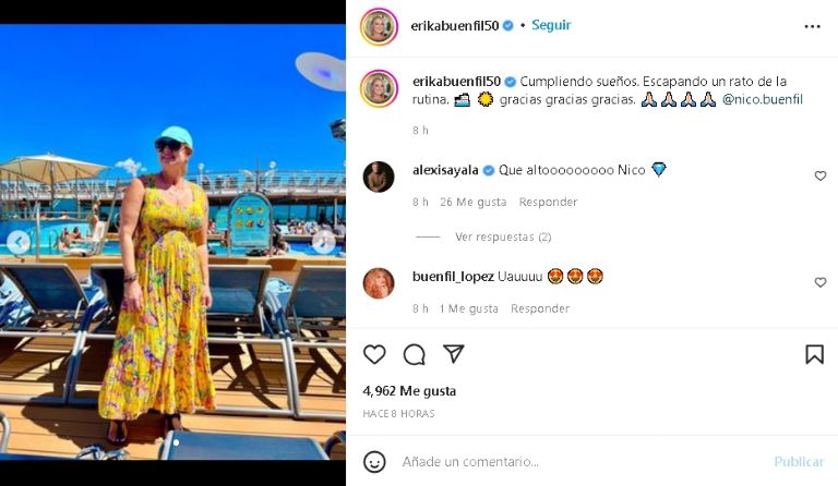 La famosa estrella de Televisa regresó a las redes sociales y esta vez para presumir su destacado vestido amarilloCiudad de México.-Una de las grandes características de Érika Buenfil es su buen sentido de la moda que siempre presume dentro del mundo del espectáculo. Y esta vez volvió a mostrar su gran don por las prendas con un distinguido outfit desde una excéntrica playa y que la hizo brillar entre los reflectores del espectáculo.