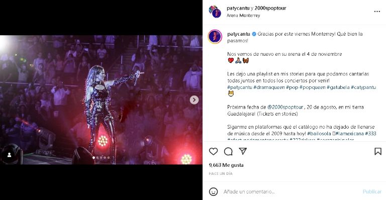 Incluso Paty Cantú aprovechó su publicación para promover su nuevo sencillo 'Bailo Sola', el cual ya está disponible en todas las plataformas digitales de música. Un tema que formará parte de su próximo material discográfico, del cual muy pronto habrá más estrenos del mismo: "Síganme en plataformas qué el catálogo no ha dejado de llenarse de música desde el 2009 hasta hoy".