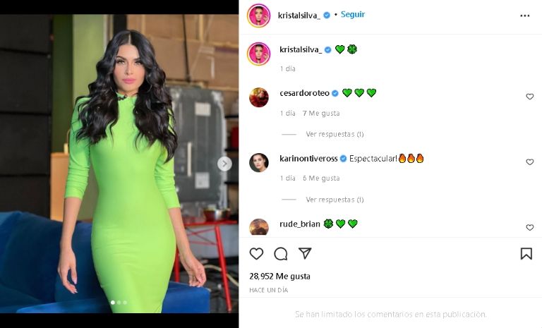 Resulta que la estrella de la televisión no solo tiene talento y carisma para conducir en la televisión abierta, sino que además posee un excelente gusto por las prendas y cómo combinarlas en cualquier época del año.En esta ocasión Kristal posó desde las instalaciones de TV Azteca mientras porta de un coqueto vestido verde, además de que llevó el cabello lacio y maquillaje café que resaltó su indiscutible belleza.