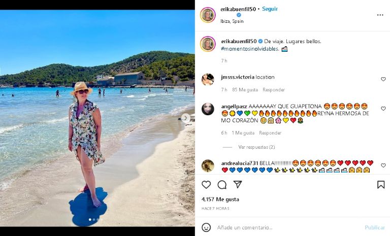 La famosa estrella de Televisa apareció con un distinguidas vacaciones desde el otro lado del mundo; este es su lookCiudad de México.- Una vez más la querida actriz de telenovelas, Érika Buenfil, enamoró sus fieles seguidores de las redes sociales y el público de Televisa al compartir sus excéntricas vacaciones al otro lado del mundo, pues visitó una excéntrica playa de Ibiza, ubicada en España.
