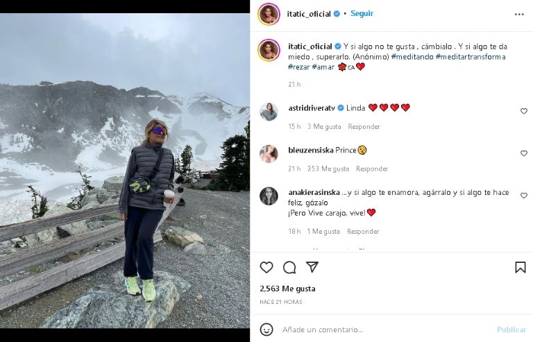 La famosa estrella de Televisa apareció con un distinguidas vacaciones desde Canadá; este es su lookCiudad de México.- Una vez más la querida actriz de telenovelas, Itatí Cantoral, enamoró sus fieles seguidores de las redes sociales y el público de Televisa al compartir sus excéntricas vacaciones al otro lado del mundo, pues visitó una excéntrica Montañas de Canadá.