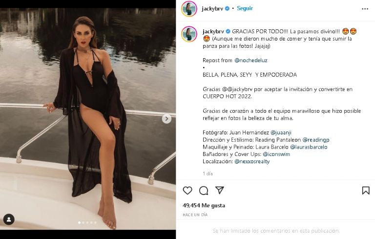 Fue en su cuenta oficial de Instagram que la intérprete de telenovelas y estrella de Telemundo publicó una imagen en luce un distinguido bañador negro que la hizo brillar en Internet. Un outfit que presumió para un programa de espectáculos llamado 'Noche de Luz' , pues es una de sus grandes colaboraciones dentro del mundo de la farándula.