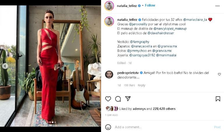 La famosa conductora del programa 'Netas Divinas' lució un ceñido vestido rojo en Instagram, el cual enamoró a sus fans de TelevisaCiudad de México.- Una vez más la destacada conductora de la televisión, Natalia Téllez, regresó a las redes sociales y no para compartir su excéntricos viajes, estilo de vida o los increíbles outfits que usa día con día dentro y fuera de los reflectores del espectáculo, más bien publicó una coqueta fotografía que dejó encantados a sus fieles seguidores de Internet. Una publicación que, si bien, sigue siendo tendencia entre su público de Televisa.