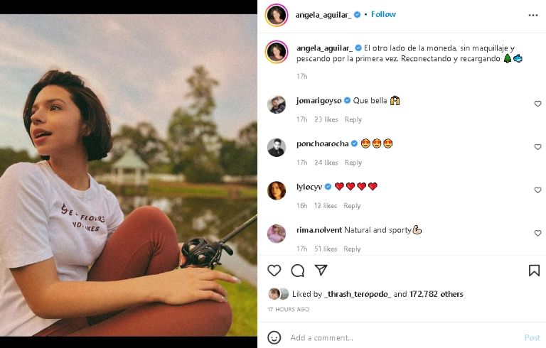 Al igual aprovechó su post para compartir el siguiente pensamiento sobre su look natural, mismo que sigue siendo tendencia por toda Internet y la farándula.: "El otro lado de la moneda, sin maquillaje y pescando por la primera vez. Reconectando y recargando".